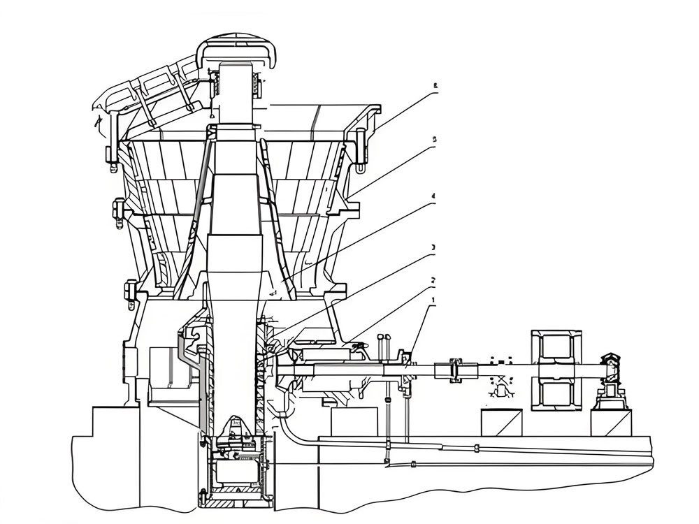Подвижный конус, как ключевой компонент в процессе дробления, выполняет сложные вращательные качательные движения, приводимые в действие эксцентриковой втулкой. Этот режим движения заставляет материал непрерывно сжиматься, ударяться и изгибаться между неподвижным конусом и подвижным конусом, тем самым достигая эффективного эффекта дробления. Эксцентриковая втулка приводится в действие двигателем и передает мощность через шкив или муфту, тем самым заставляя главный вал и подвижный конус эксцентрично качаться. Это периодическое движение приближения и удаления от фиксированного конуса формирует непрерывное дробящее действие, гарантируя, что материал может быть измельчен равномерно и эффективно.